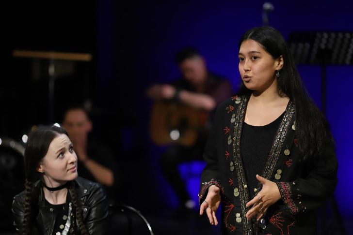 Также элементы мюзикла в спектакле создавали эффект концертного шоу какой-нибудь модной группы. Актеры исполняли песни современных исполнителей, таких как МС Инсан, группы «Рух», «Дервиш-Хан». Во время песен зрители включали фонарики и подпевали в такт словно на концерте. Были даже и танцы – артисты зажигали так, что все стали танцевать. Получилось очень атмосферно.