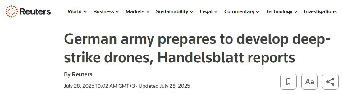 ❗️🇩🇪 Германия запускает разработку дальнобойных ударных дронов