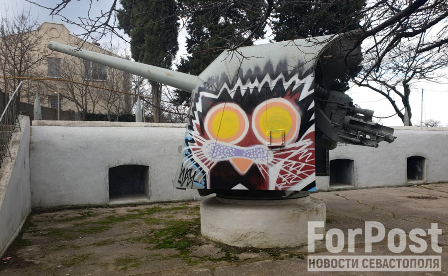 Больше всего от рук любителей настенного искусства пострадала одна из башен участника Великой Отечественной войны эскадренного миноносца «Бойкий» – Б-13, которая была установлена на батарее после Великой Отечественной войны. На неё неизвестные нанесли своеобразный рисунок кота.