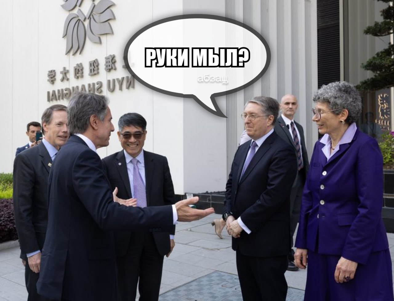 Госсекретарь США с 24 по 26 апреля находится в Китае с визитом, куда он примчался ещё вчера. Вот тут можно посмотреть, как «горячо» приняли его китайские коллеги.