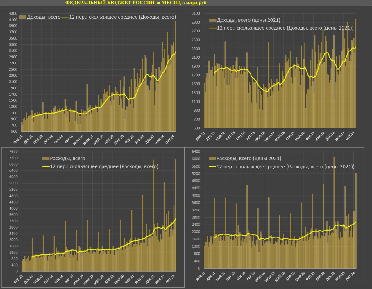 За 4кв24 ситуация с бюджетом ухудшилась – дефицит 4.06 трлн vs 1.78 трлн в 4кв23 и 3.5 трлн в 4кв22.