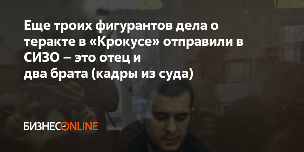 Басманный суд Москвы арестовал 25-летнего Диловара Исломова, 33-летнего Аминчона Исломова и их 62-летнего отца Исроила Исломова по делу о теракте в подмосковном «Крокус Сити Холле» до 22 мая. Об этом сообщает корреспондент «БИЗНЕС Online» из суда. Заседания проходили в закрытом режиме