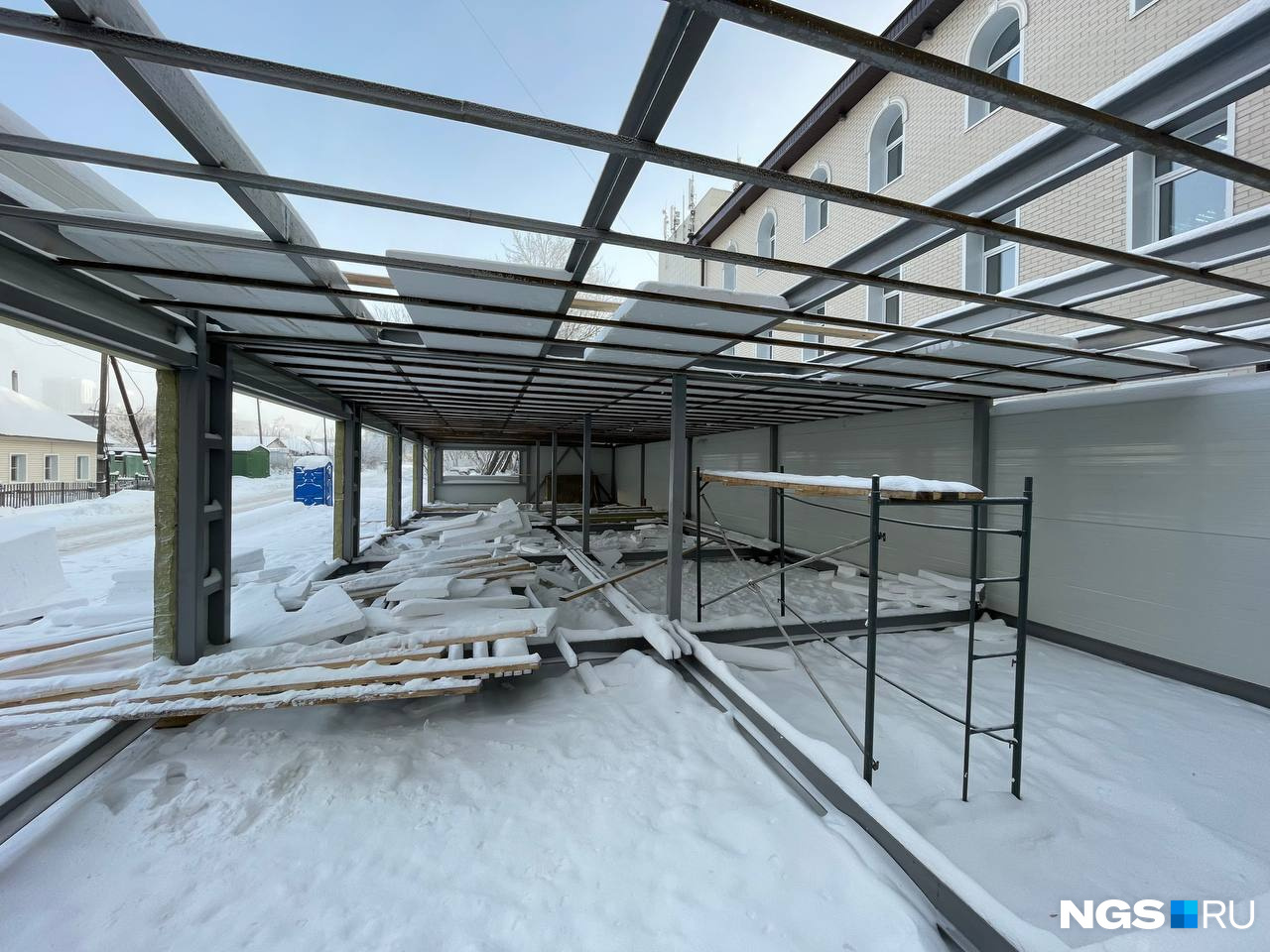 В конце лета во дворе одного из домов Центрального района вырубили деревья и снесли старое овощехранилище. Совсем скоро расчищенный участок закатали в асфальт, а позже на нем стали возводить железные конструкции неизвестного здания. От окон жилого дома и административного здания по соседству до новых стен — около метра. Жители переживают, что в случае пожара это может привести к трагедии. Журналист НГС узнала, кто ведет такое строительство и почему строение вряд ли снесут.