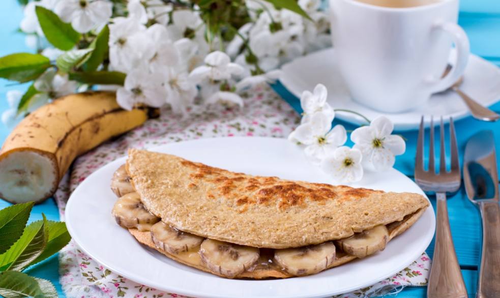 5․ Выложите овсяноблин на тарелку, добавьте фрукты, ягоды или другие добавки. Согните пополам.