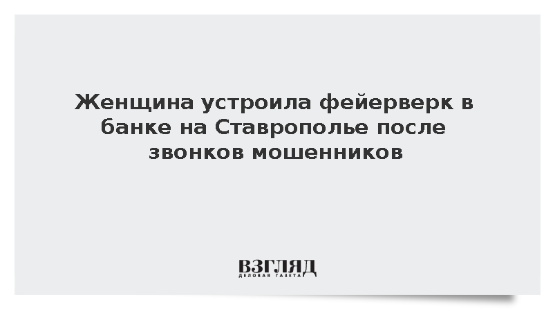 В городе Невинномысске в Ставропольском крае женщина подожгла фейерверк в банке после звонков мошенников, сообщил мэр Михаил Миненков.
