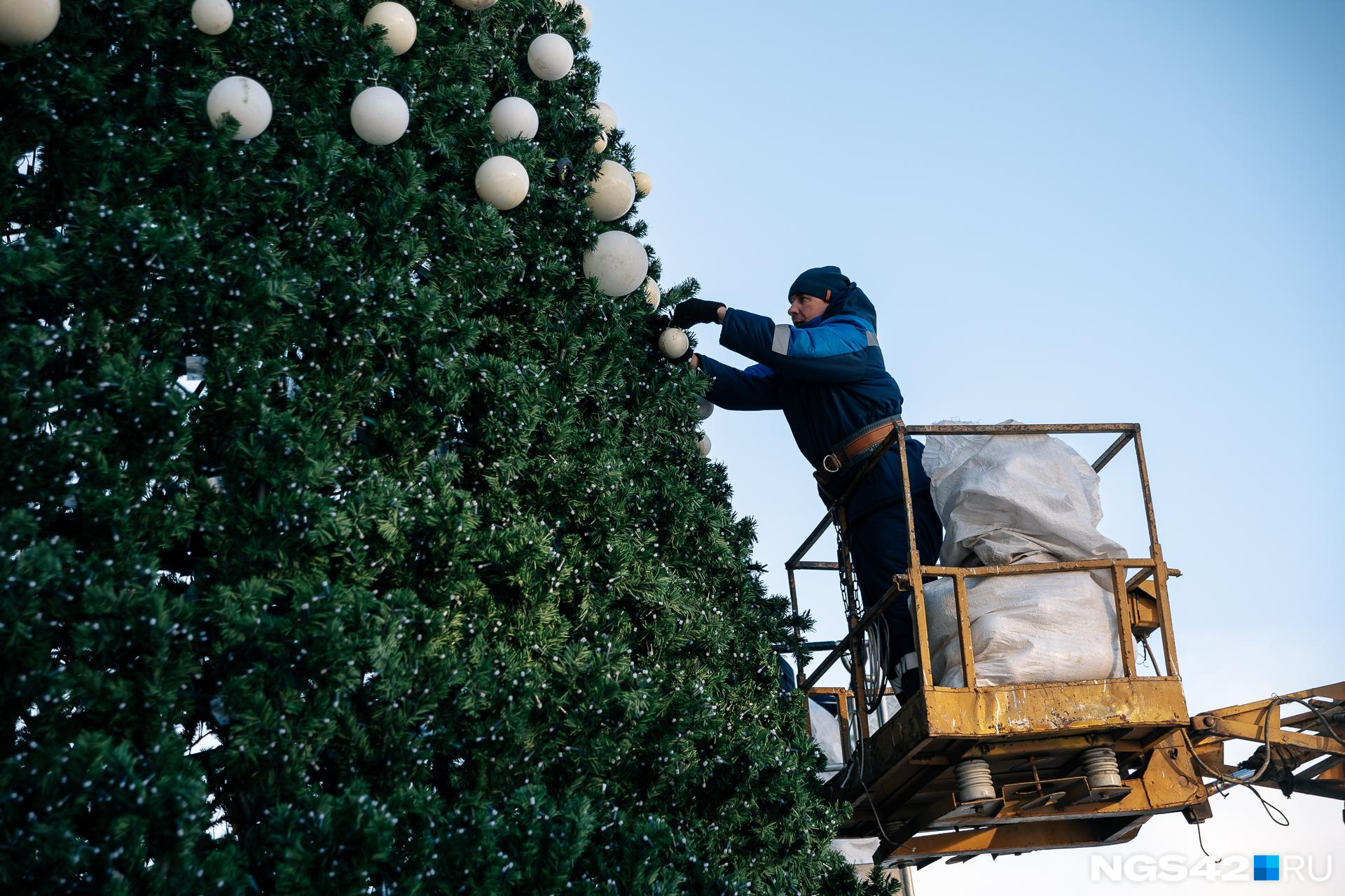 Отметим, в нынешнем году монтировать новогоднюю ель в Кемерове начали раньше, чем в прошлом. В 2022-м работы начались 21 ноября.