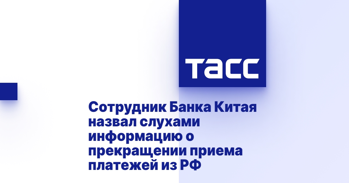 ПЕКИН, 21 февраля. /ТАСС/. Банк Китая не прекращал принимать платежи из России, а появившуюся об этом информацию можно считать слухами. Об этом корреспонденту ТАСС сообщил сотрудник указанной финансовой организации.