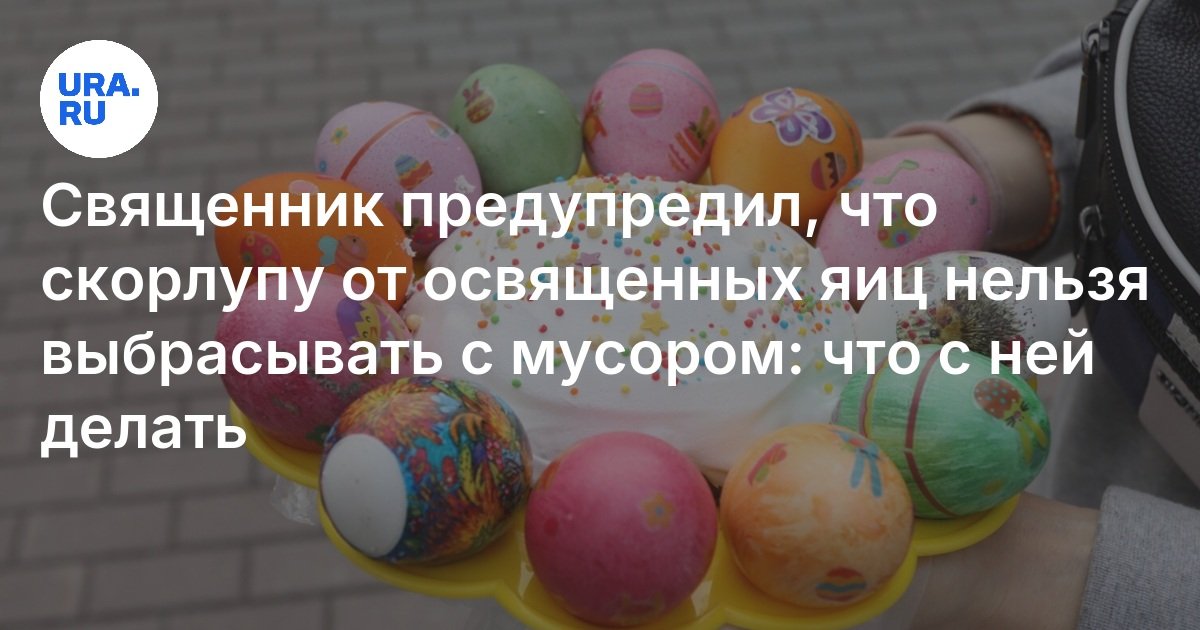 «Все это (все, что освящено в храме, в том числе — скорлупу, — прим. URA.RU) можно сжечь, например, на приусадебном участке, и закопать там, где люди и животные не будут попирать его ногами», — пояснил Максим Портнов в беседе с aif.ru. Он добавил, что скорлупа от пасхального яйца не является святыней в полном смысле этого слова, как, например, Святая вода, и придавать ей чрезмерного значения не стоит. Вместе с тем традиция рекомендует не выбрасывать освященные предметы вместе с мусором. Священник также подчеркнул, что мнения по этому вопросу могут различаться.