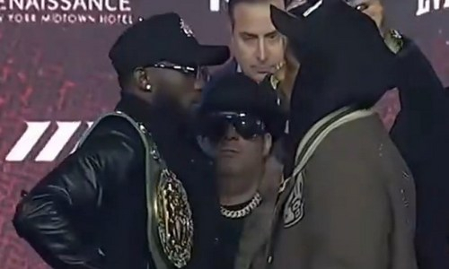 Перед поединком оппоненты приняли участие в пресс-конференции, на которой провели первую дуэль взглядов. Видео эпизода можно посмотреть ниже.