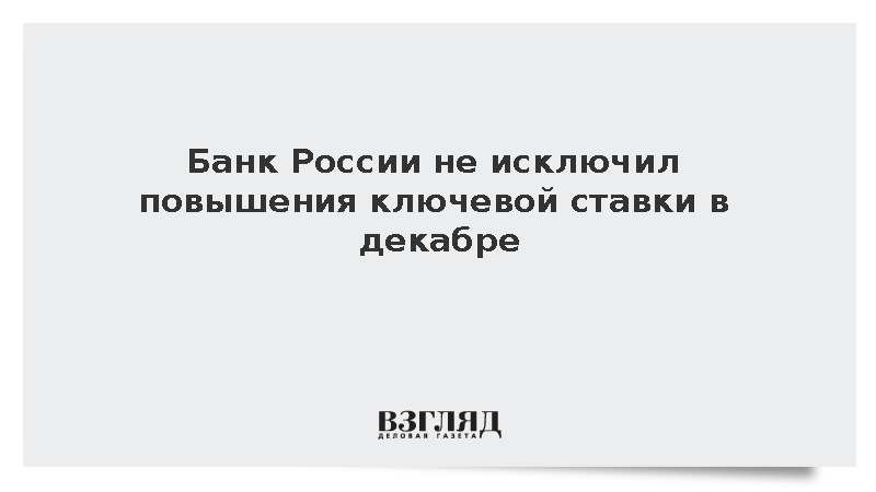 Банк России рассматривает возможность повышения ключевой ставки в декабре, но окончательное решение будет приниматься на основе экономических данных на середину месяца, сообщил зампред регулятора Алексей Заботкин в Госдуме.