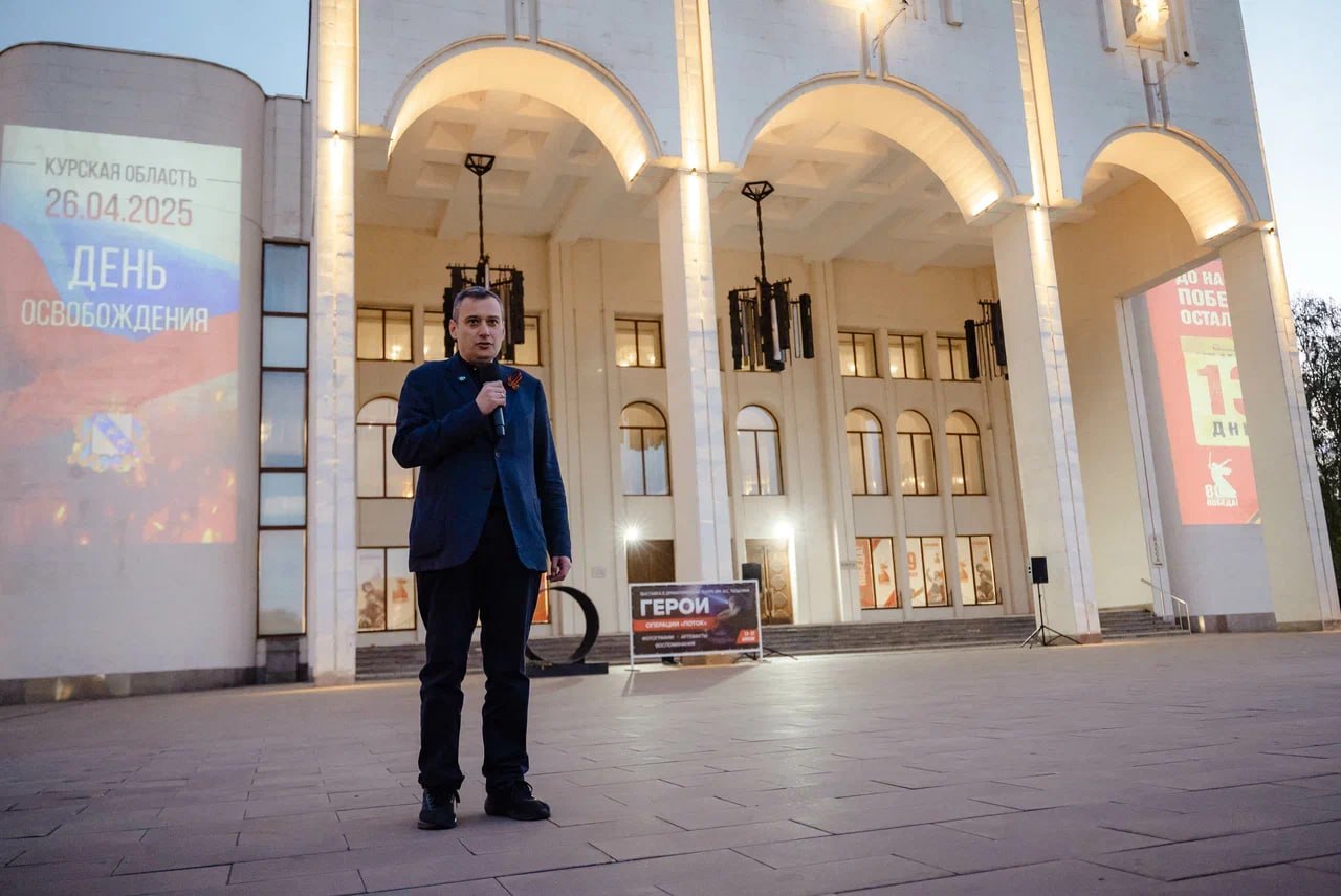 ΠΠ° ΡΠΊΡΠ°Π½Π΅ Π΄ΡΠ°ΠΌΡΠ΅Π°ΡΡΠ° Π² ΡΠ΅Π½ΡΡΠ΅ ΠΡΡΡΠΊΠ° ΠΏΠΎΠΊΠ°Π·Π°Π»ΠΈ Π²ΠΈΠ΄Π΅ΠΎΡΠΎΠ»ΠΈΠΊ ΠΎΠ± ΠΎΡΠ²ΠΎΠ±ΠΎΠΆΠ΄Π΅Π½ΠΈΠΈ ΠΎΠ±Π»Π°ΡΡΠΈ ΠΎΡ ΠΠ‘Π£. ΠΠΈΡΠ΅Π»ΠΈ Π²ΡΡΡΠ΅ΡΠΈΠ»ΠΈ Π΅Π³ΠΎ ΠΎΠ²Π°ΡΠΈΡΠΌΠΈ ΠΈ Π°ΠΏΠ»ΠΎΠ΄ΠΈΡΠΌΠ΅Π½ΡΠ°ΠΌΠΈ.
