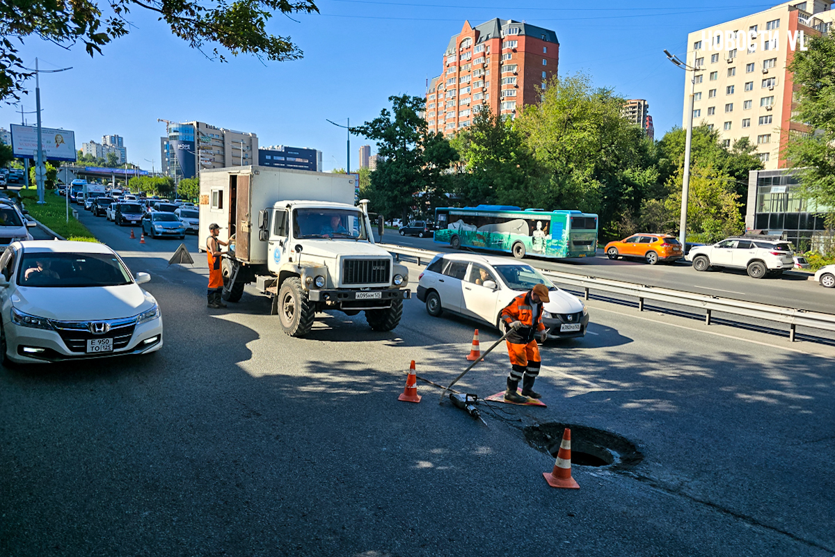 На место тут же приехала бригада Примводоканала – это, оказывается, их люк. Сперва из провала извлекли помятый дорожный знак. Видимо, им прикрывали образовавшуюся дыру, потому что у знака не было никакой опоры. Предупреждающим он вряд ли был. Затем рабочие сняли часть асфальта и извлекли сломанное пополам бетонное кольцо. Сегодня люк отремонтируют или хотя бы поставят более очевидное предупреждение для водителей.