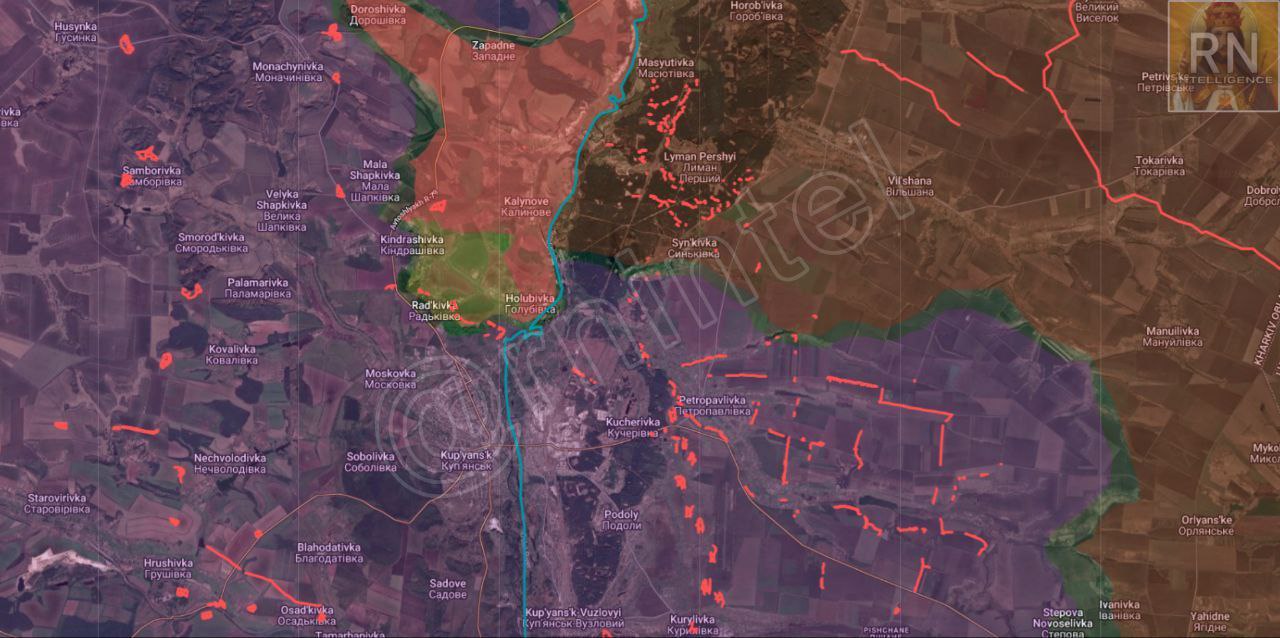 ❗️Международные ТГ-каналы сообщают, что после взятия Радьковки подразделения Армии России закрепились и взяли под контроль около половины крупного села Кондрашовка (население более 800 человек) в Харьковской области
