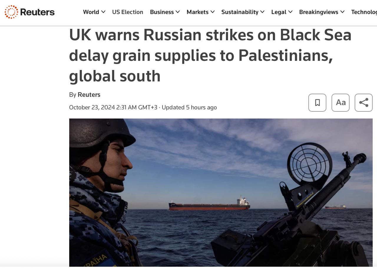 Британский премьер Стармер считает, что русские удары по инфраструктуре портов Украины заставляют голодать палестинцев.