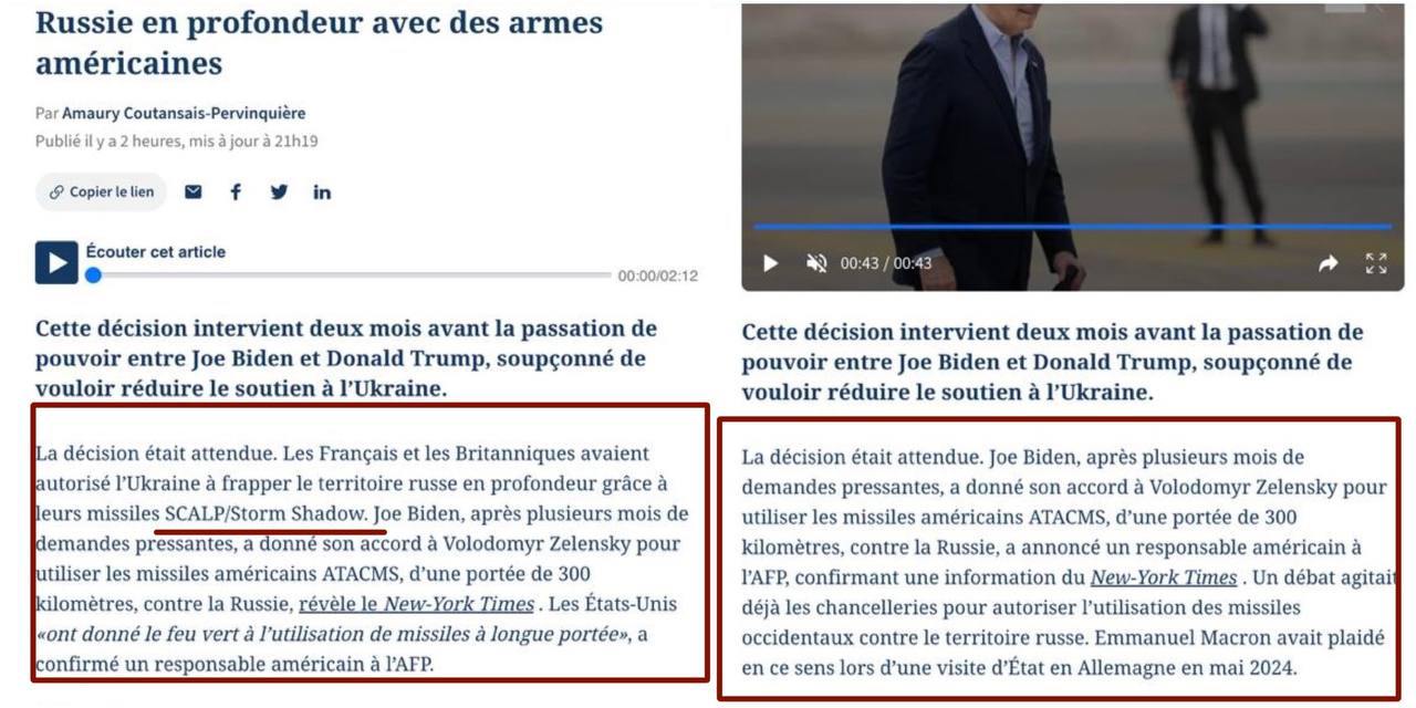Газета «Фигаро» удалила со своего сайта строки о том, что Франция и Британия позволили Украине наносить удары вглубь российской территории ракетами SCALP/Storm Shadow.