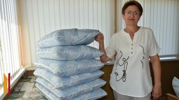 – Вспомнила, что на чердаке хранится старая перина из приданого – ей уже около 40 лет, – рассказала Валентина Васильевна. – Раньше ею пользовались, а сейчас перины стали не в моде. Она была аккуратно упакована в целлофан, выбросить – жалко. А тут и пригодилась для подушек.