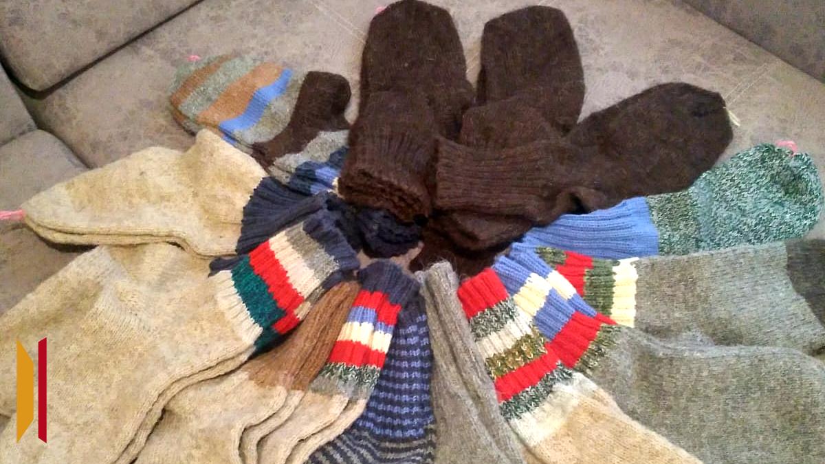 – Руки у меня медленно вяжут – артрит, – говорит пожилая женщина. – Довяжу до зимы, сколько смогу. Хочу пожелать нашим защитникам стойкости, мужества, героизма, уверенности, что мы победим, и скорейшего возвращения домой.