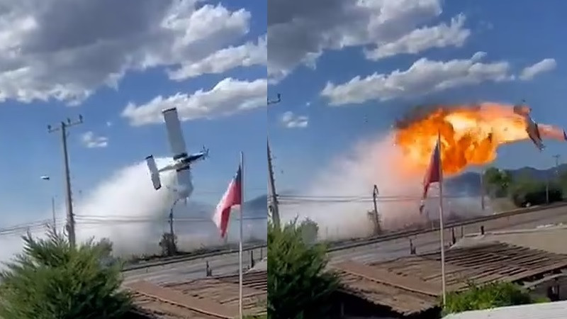 В чилийском городе Талька пожар закончился трагедией: один из самолётов, который пытался совладать с возгоранием, столкнулся с линией электропередач. Как пишет Daily Mail, ужасающее зрелище попало на видео и было зафиксировано с нескольких ракурсов.