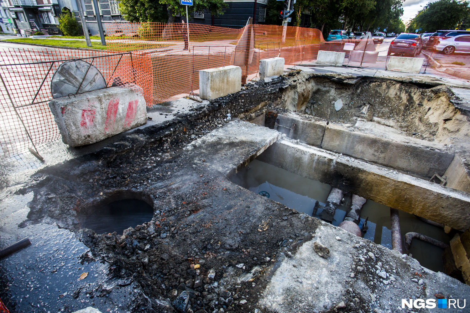 В начале июля на перекрестке в Октябрьском районе Новосибирска из земли забил фонтан воды.
