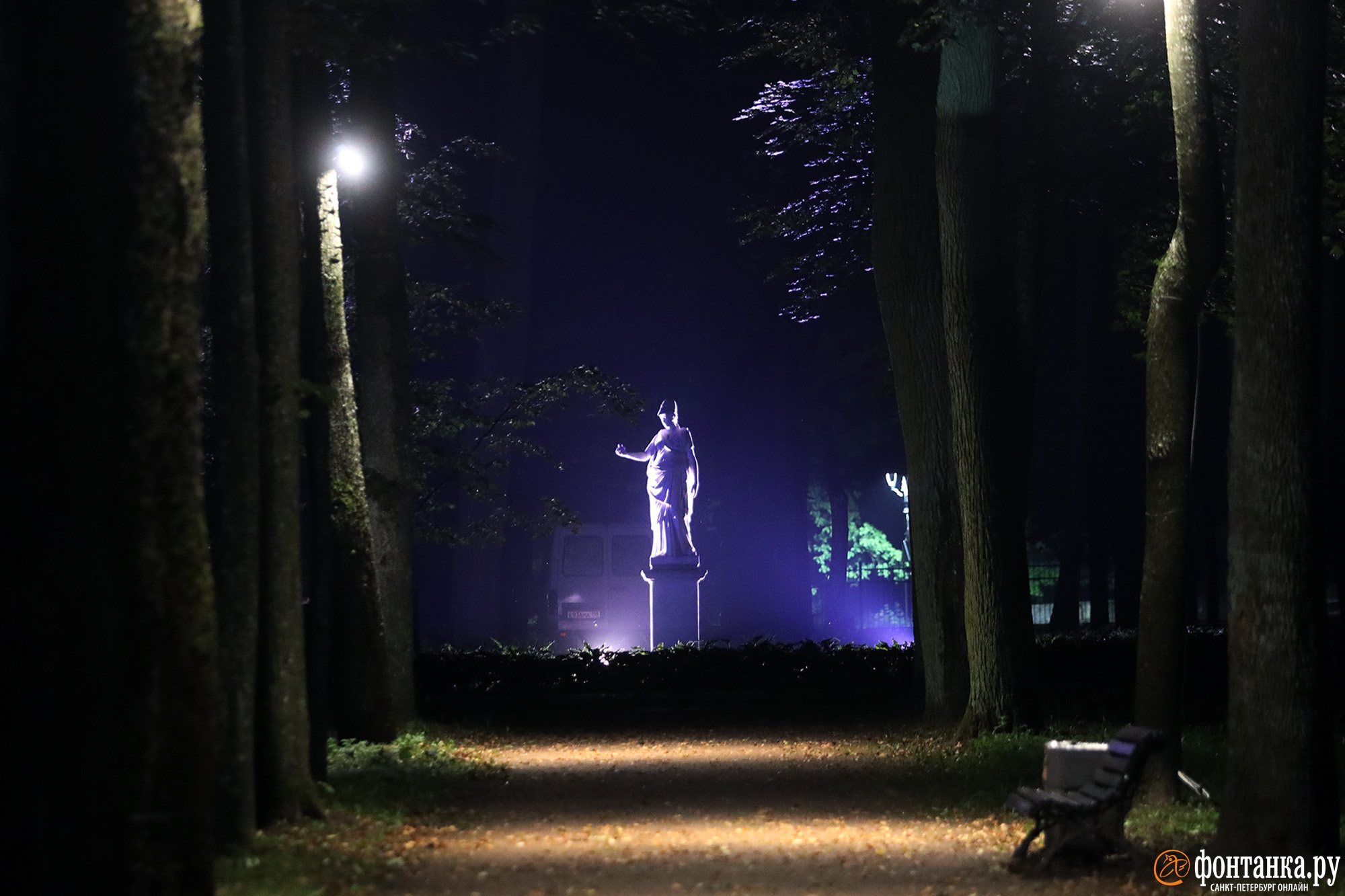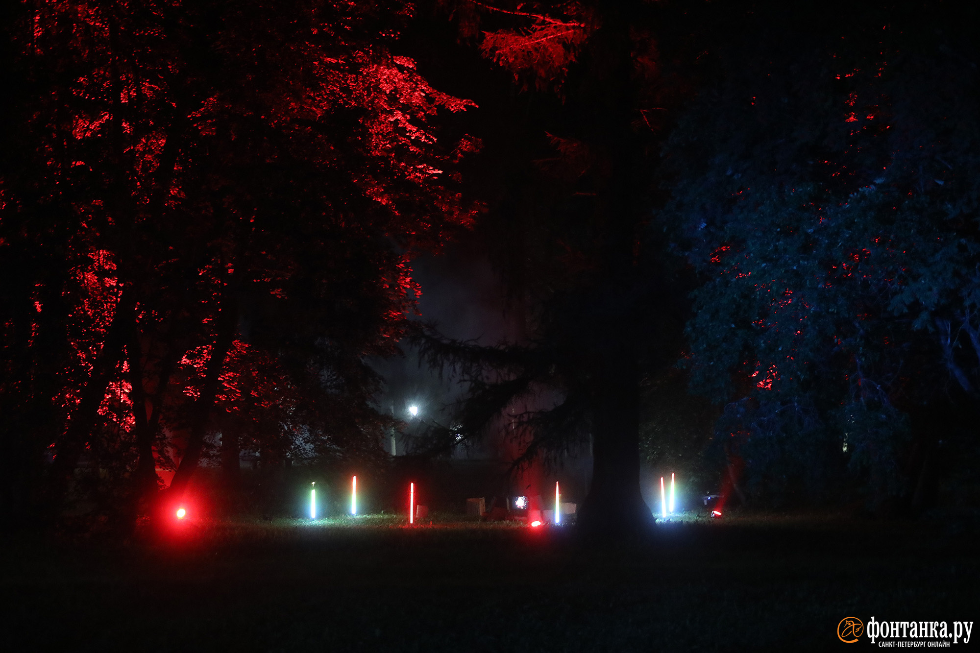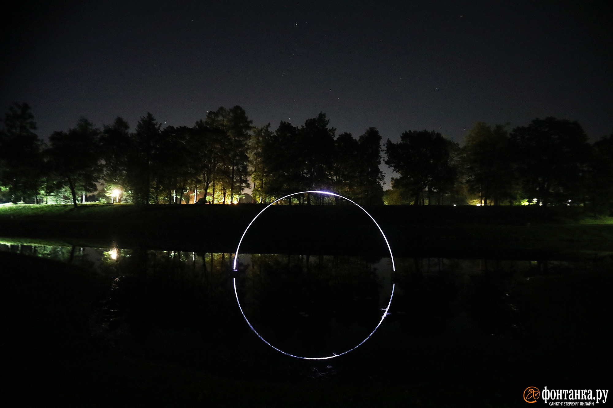 Поздний вечер, темнота, возле входа в музей-заповедник «Гатчина» — лишь охрана. Изредка через ворота туда-сюда пробегают художники с проводами и материалами. Уже скоро тут будет многолюдно: гатчинский Фестиваль света — всегда востребованное шоу, собирающее широкую аудиторию. Но пока корреспонденты «Фонтанки» пробираются по дорожкам в одиночестве и темноте.