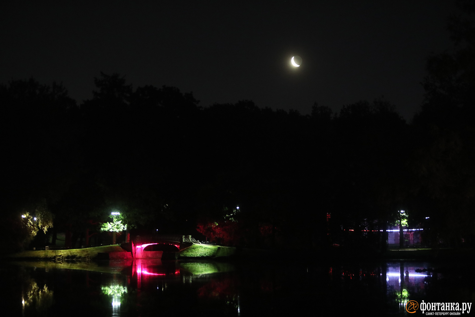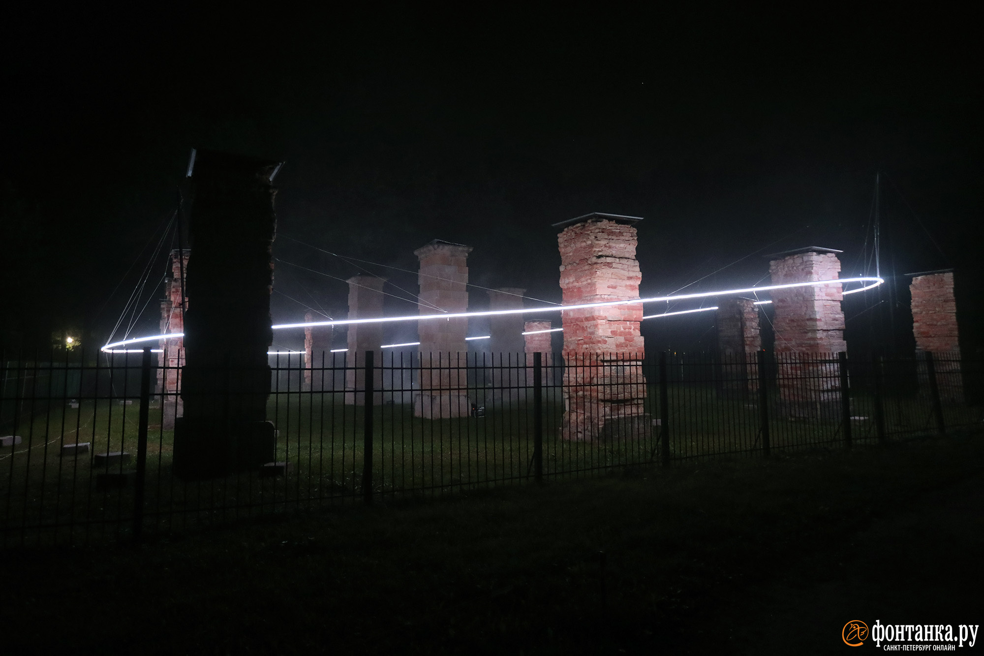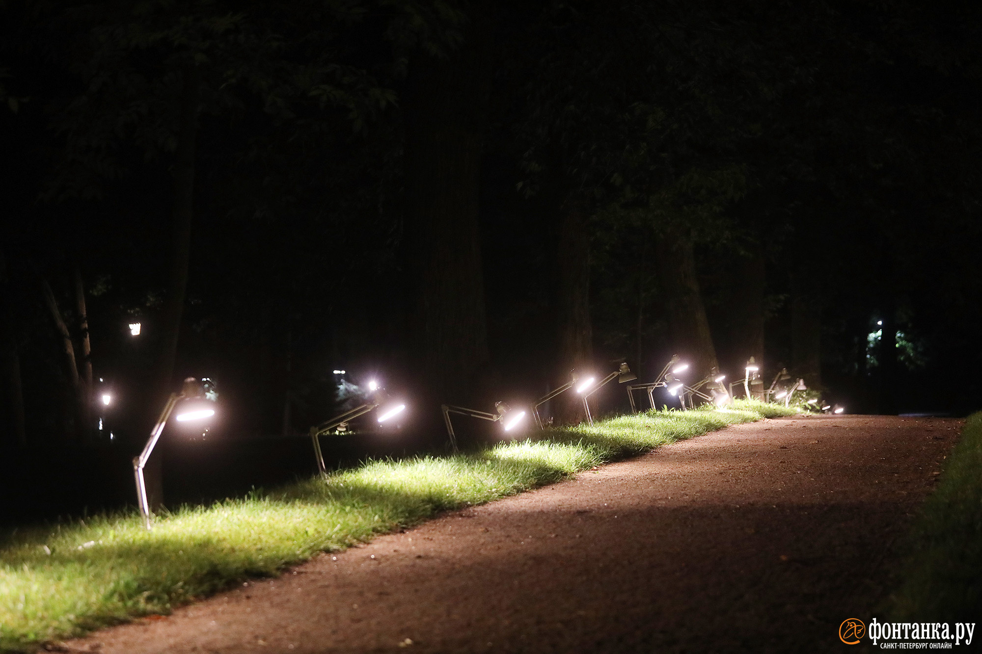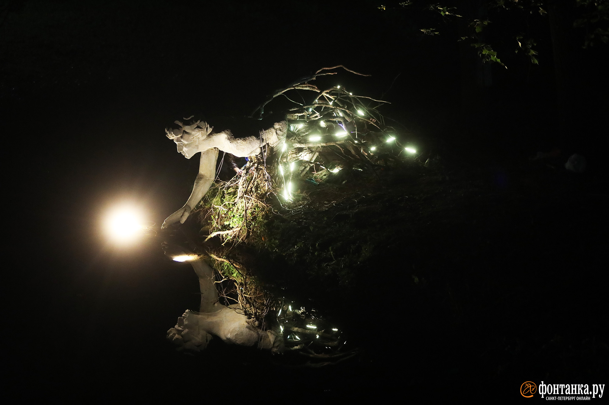 Поздний вечер, темнота, возле входа в музей-заповедник «Гатчина» — лишь охрана. Изредка через ворота туда-сюда пробегают художники с проводами и материалами. Уже скоро тут будет многолюдно: гатчинский Фестиваль света — всегда востребованное шоу, собирающее широкую аудиторию. Но пока корреспонденты «Фонтанки» пробираются по дорожкам в одиночестве и темноте.