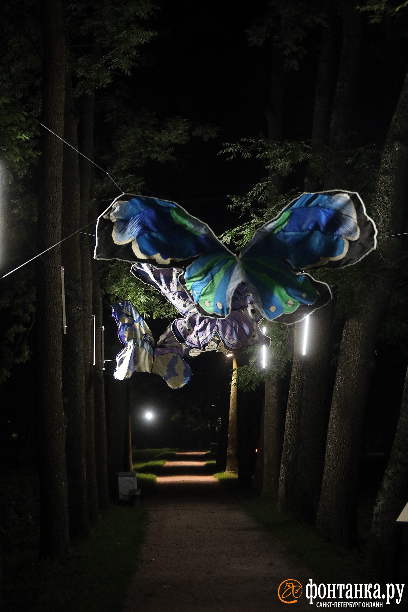 На этом фестивале, впрочем, все заканчивается хорошо, и бабочки из коконов все-таки появляются: ближе к дальней части парка над аллеей распахнуты гигантские крылья проекта Light Together «Эффект бабочки». Как известно, это уже — о значимости мельчайших элементов на всю систему мира.