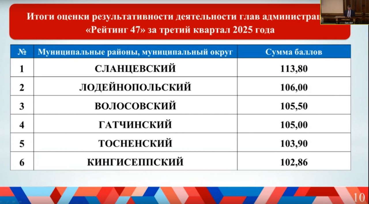 В Ленобласти подвели итоги «Рейтинга 47» за третий квартал 2025 года