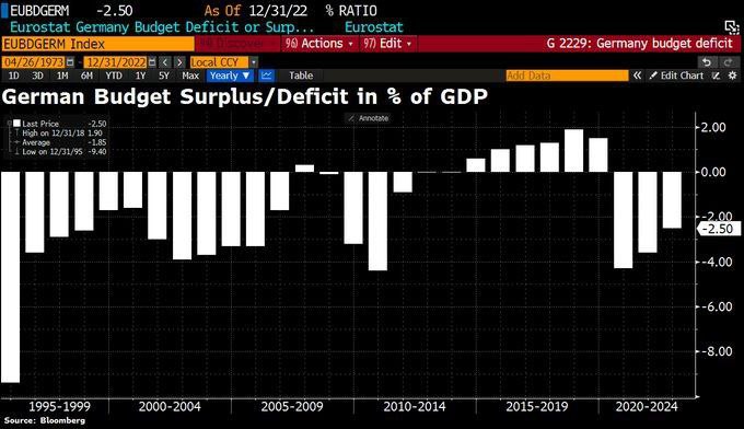 В январе прошлого года правительство канцлера ФРГ Олафа Шольца задним числом изменило бюджет за 2021-й, перекинув в климатический фонд и на финансирование зеленых энергетических проектов неизрасходованные €60 млрд кредитных средств, предназначенных для борьбы с последствиями пандемии. 16 ноября этого года Конституционный суд Германии запретил эту операцию. https://t.me/banksta/44887