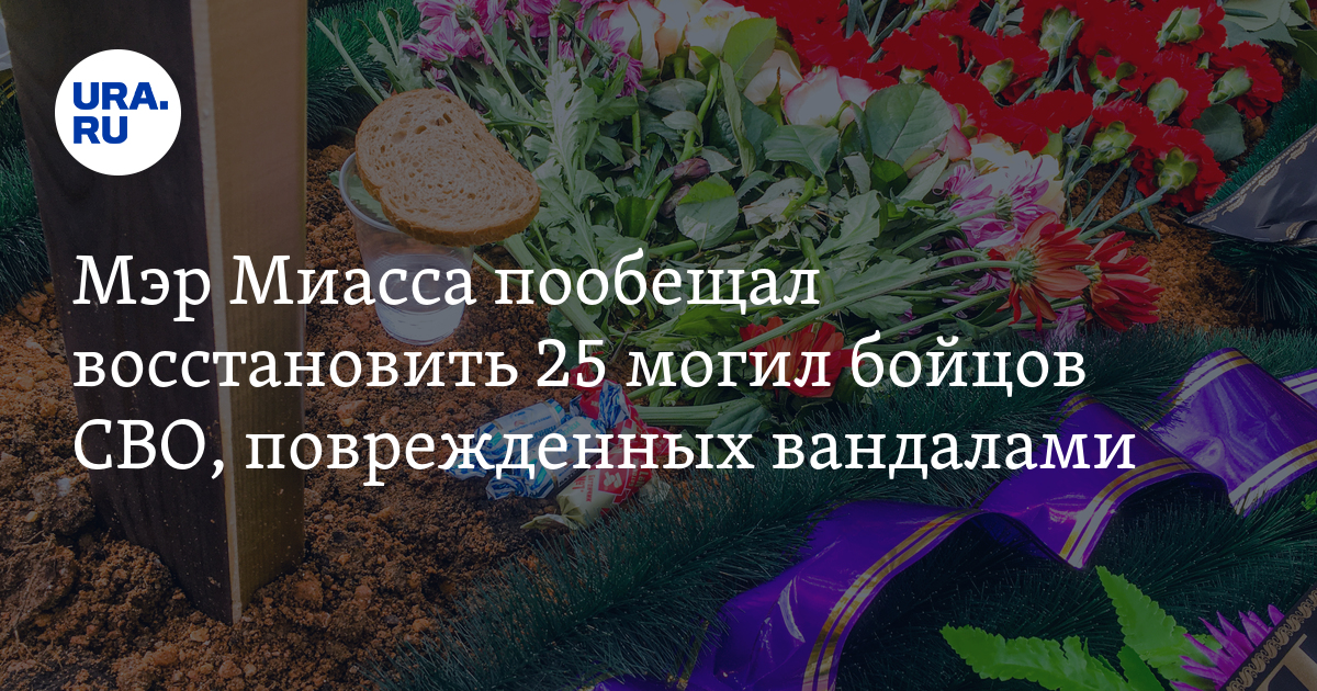 21 ноября на кладбище в Миассе было повреждено 25 могил. Неизвестные вандалы сожгли могилу военврача Олега Марченко, погибшего на СВО. На других могилах бойцов, в том числе участников ЧВК «Вагнер», порезали российские флаги. Полиция ищет вандалов. Возбуждено уголовное дело по ч.1 ст. 244 УК РФ (надругательство над телами умерших и местами их захоронения), которое расследует следственный отдел по Миассу СУ СКР по региону.