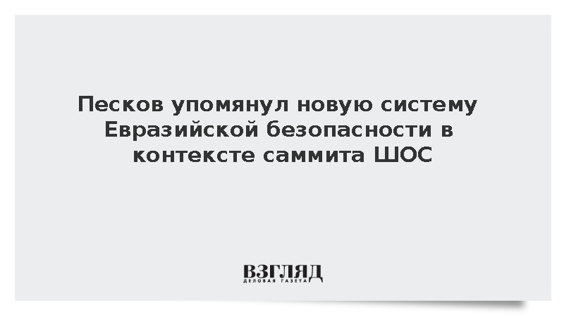 Идея создания новой системы Евразийской безопасности, озвученной президентом Владимиром Путин, обязательно будет упомянута на саммите ШОС, сообщил пресс-секретарь главы государства Дмитрий Песков.