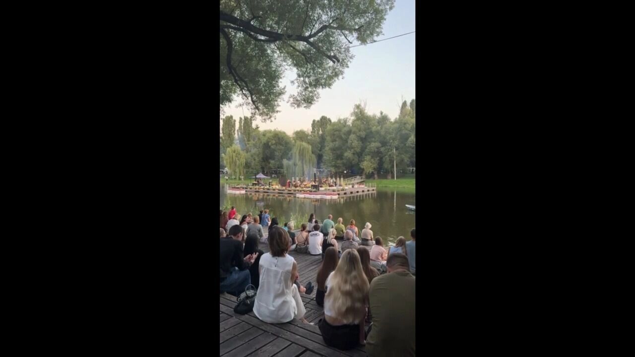 Например, днём на набережной в парке Победы состоялся театрализованный концерт: певцы находились на плавающей сцене, но их выступление также транслировали на установленных на берегу экранах.