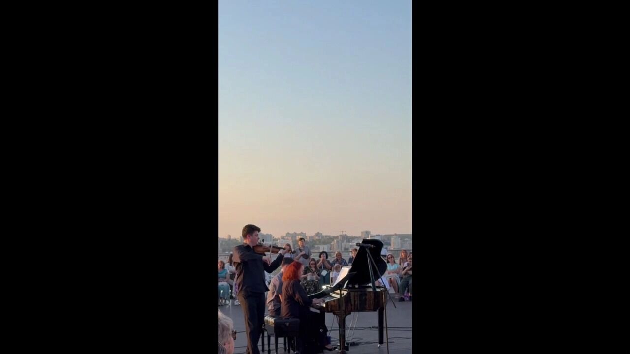 Вечер 5 августа закончился очередным концертом, который на этот раз состоялся на крыше «Школы 21». Здесь на фоне заката играл один из самых известных скрипачей страны Пётр Лундстрем. Аккомпанировала ему солистка белгородской филармонии Ирина Соколова.