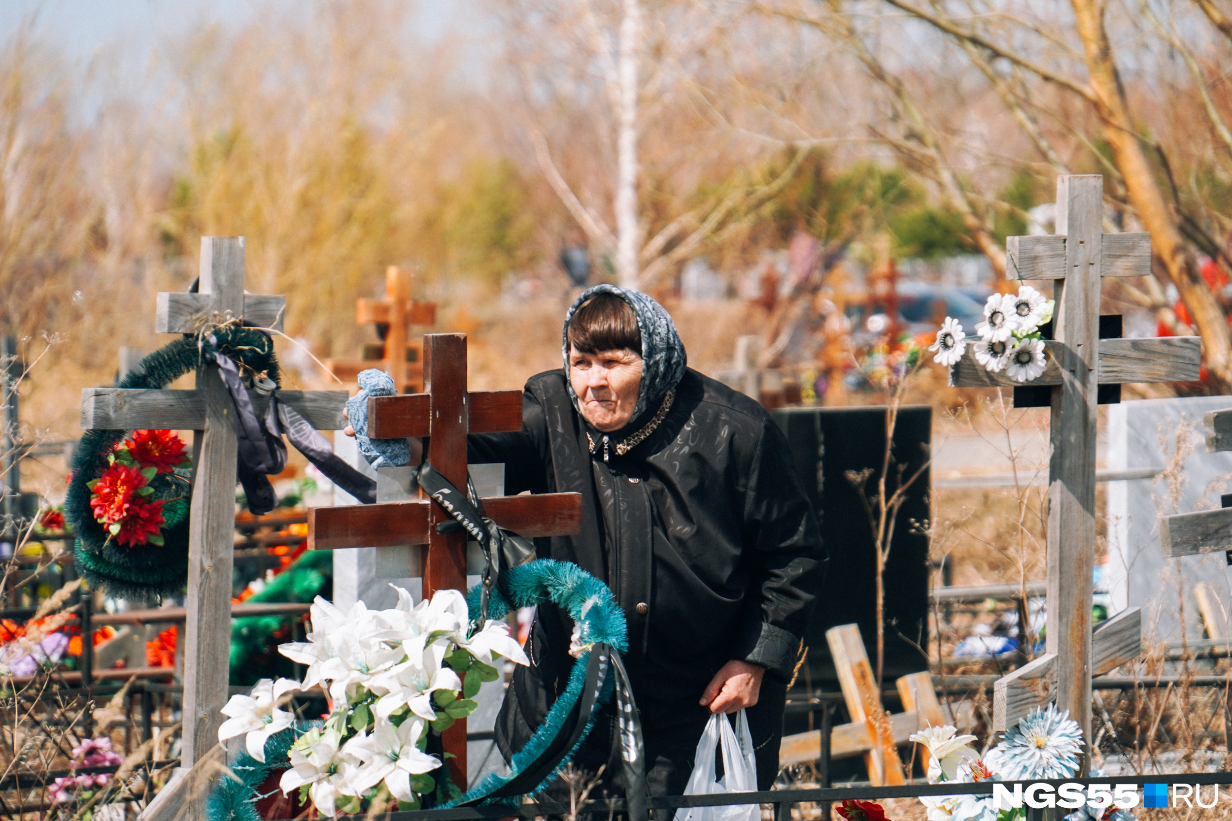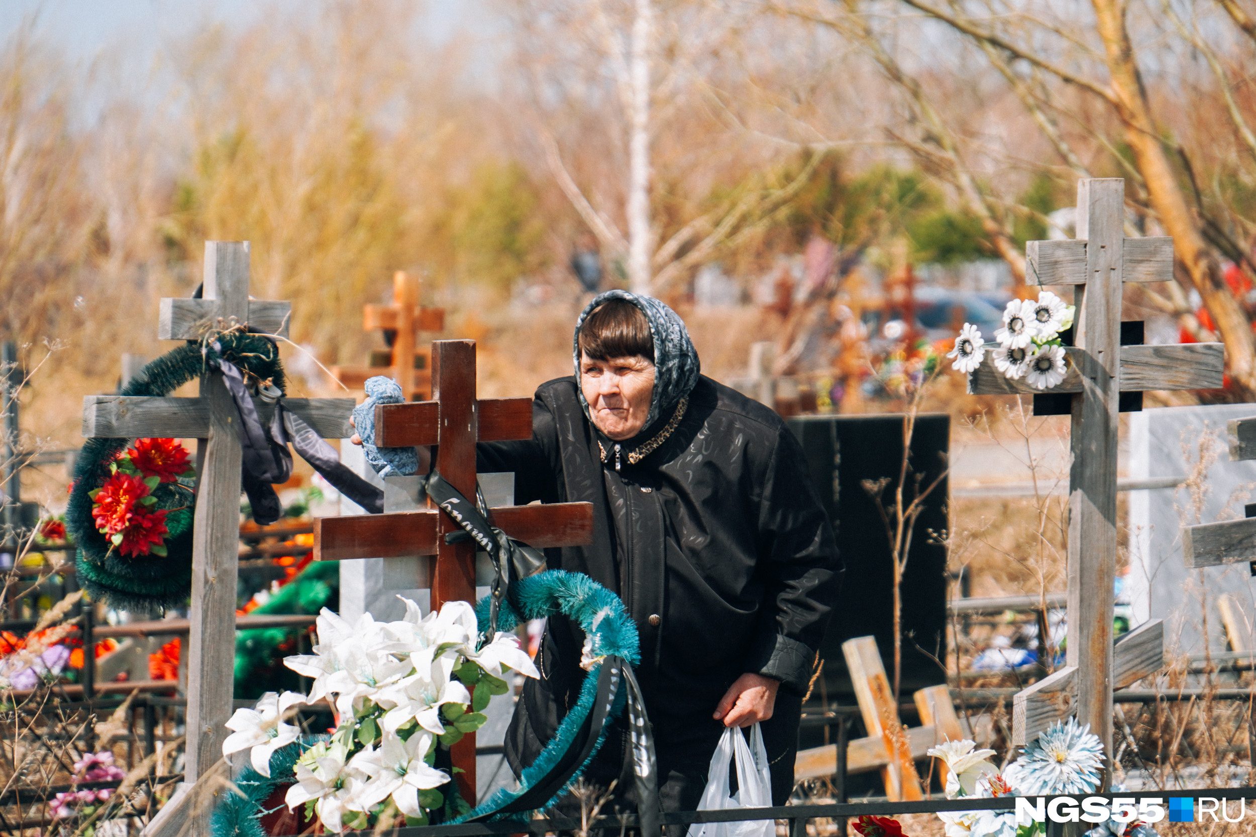 Затем мы встретили еще одну женщину. Она похоронила 29-летнего сына, и случилось это в начале апреля. У него остался ребенок. Женщина призналась, что до сих пор не может поверить в произошедшее. Мы увидели ее в тот момент, когда она зажигала свечи. Могила молодого человека усыпана цветами и венками.