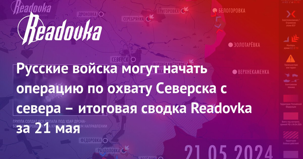 Русские войска могут начать операцию по охвату Северска с севера – итоговая сводка Readovka за 21 мая
