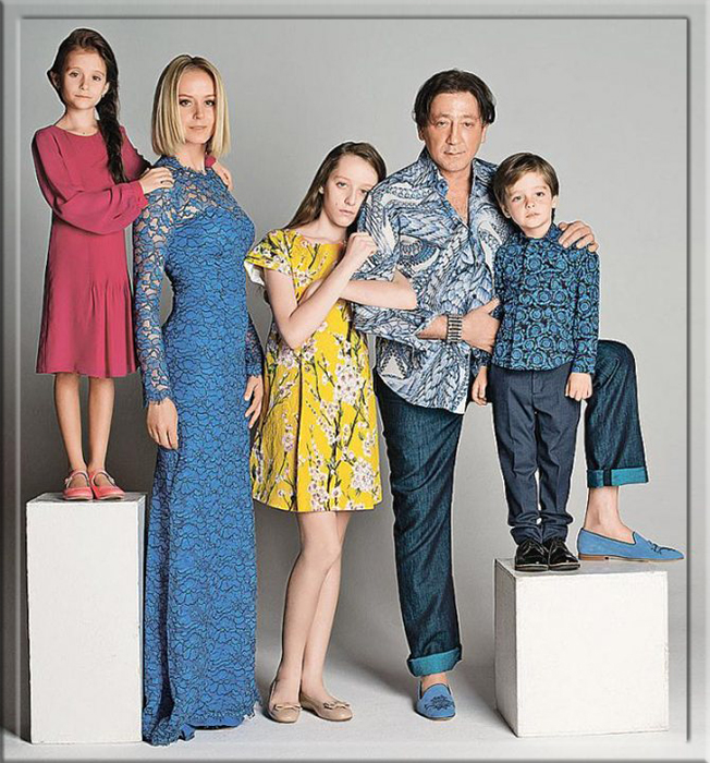Григорий Лепс со второй женой Анной и их тремя детьми.