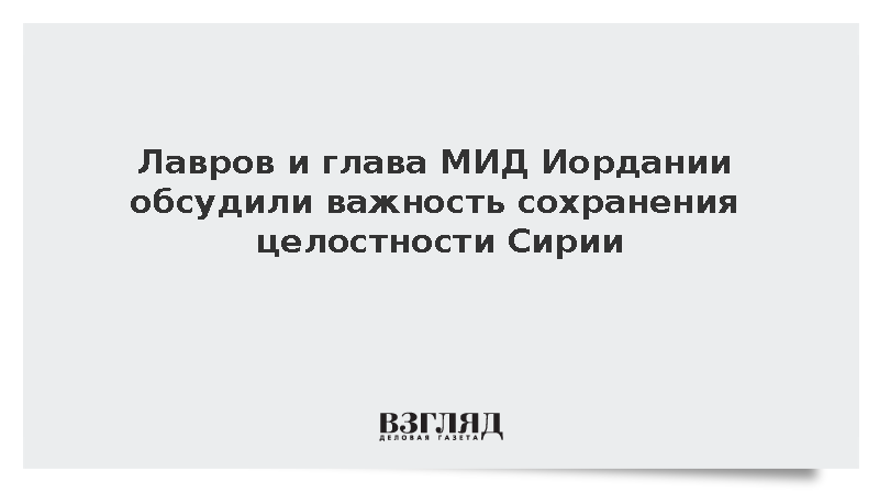 Министры иностранных дел России и Иордании провели телефонные переговоры, обсудив необходимость сохранения территориальной целостности Сирии и организацию общенационального диалога.