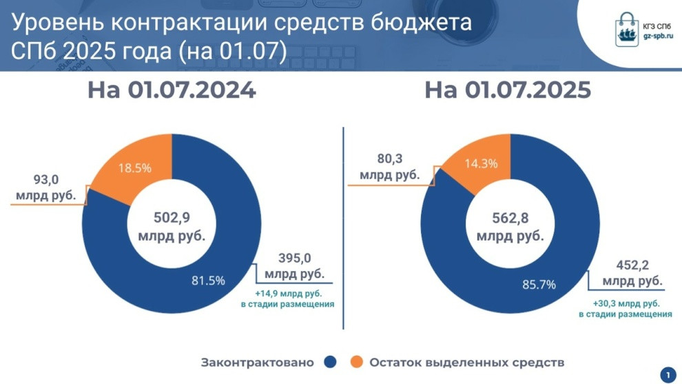 Объемы средств на закупки и услуги для городских нужд Петербург увеличивает ежегодно. В 2025 году было выделено 562 миллиарда рублей, что на 60 миллиардов больше, чем в 2024 году. Рост составил 12%.