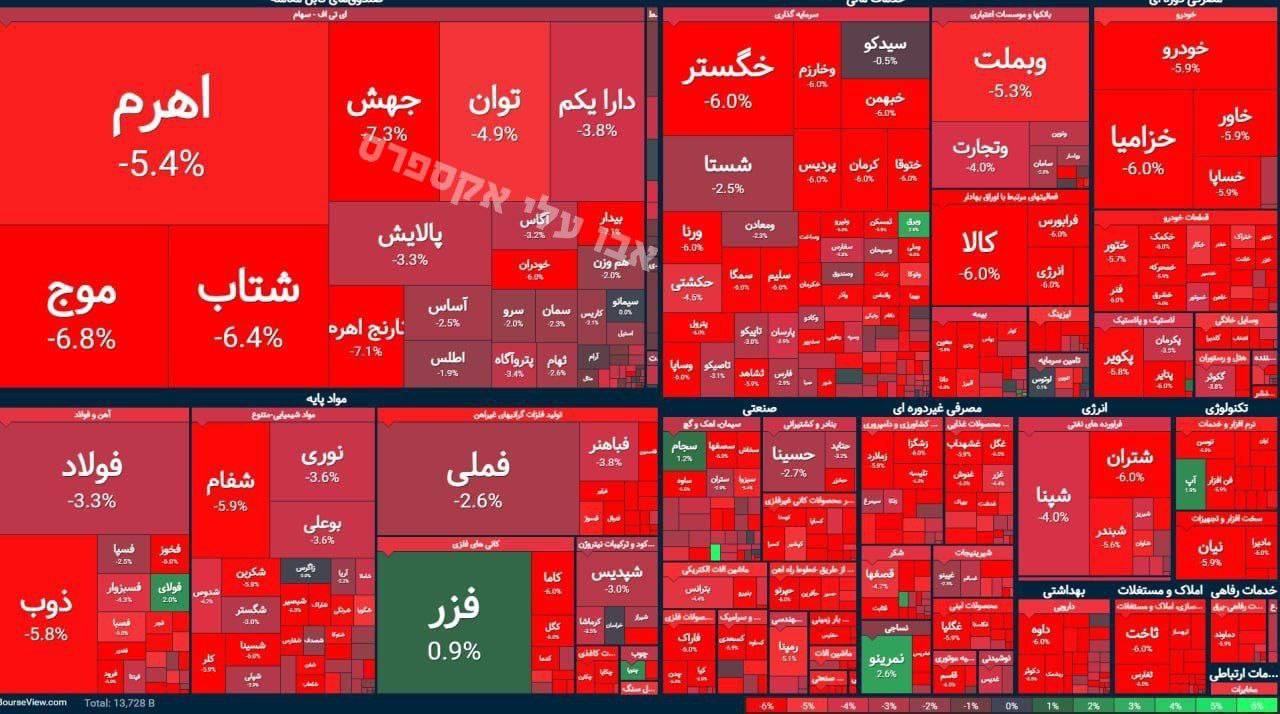 97% акций компаний на иранской фондовой бирже сегодня торгуются вниз.