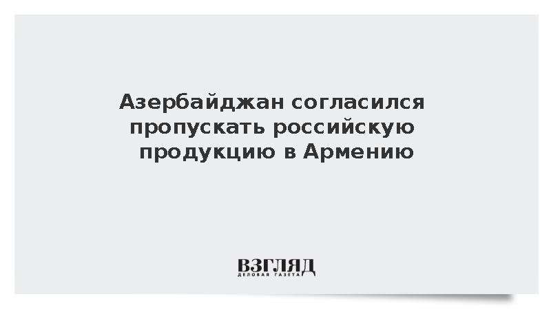 Азербайджан подтвердил готовность пропускать российскую продукцию в Армению через свою территорию, передает РИА «Новости». Об этом сообщил вице-премьер России Алексей Оверчук, уточнив, что сообщение поступило два дня назад.