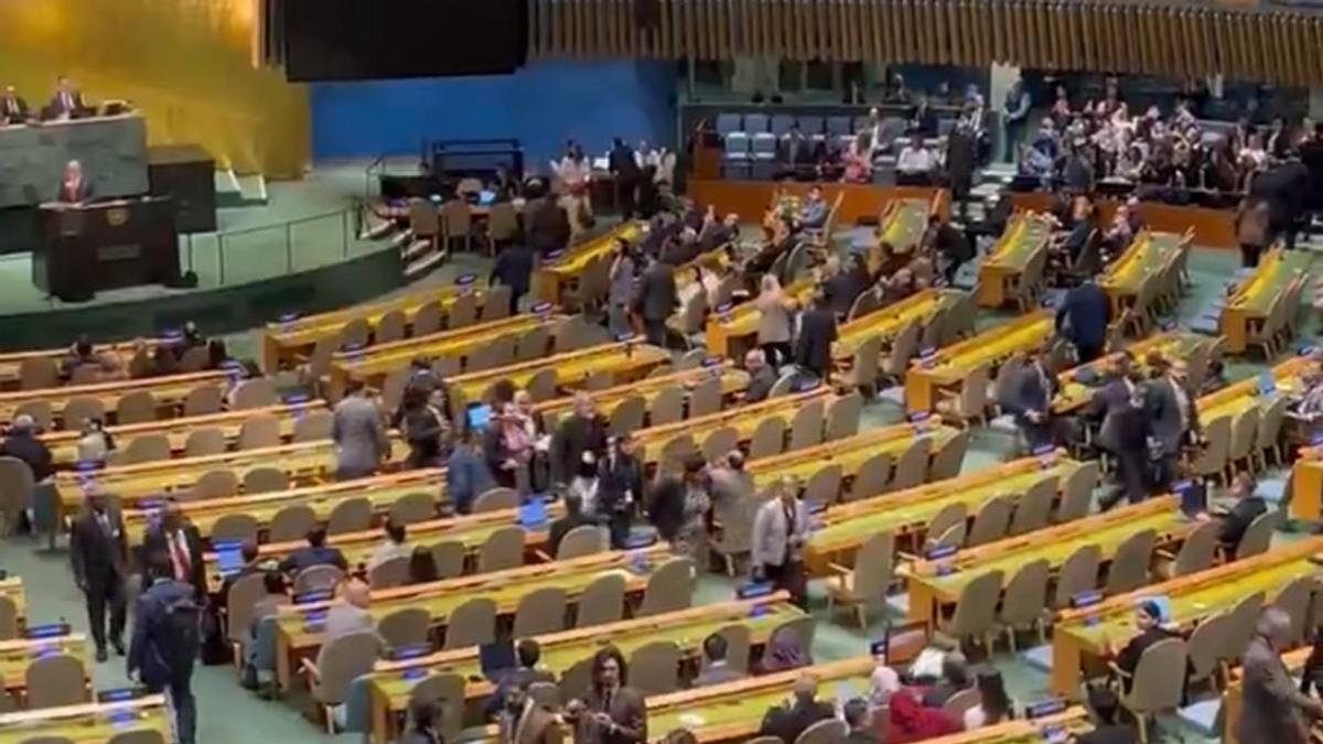 Сегодня перед выступлением премьер-министра Израиля Беньямина Нетаньяху на Генассамблее ООН делегаты нескольких стран встали и покинули зал, передает NUR.KZ со ссылкой на "РИА Новости".