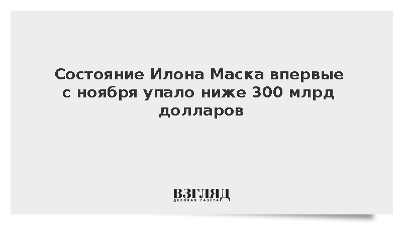 Состояние Илона Маска впервые с ноября опустилось ниже 300 миллиардов долларов, так как акции Tesla упали на 17,5% за три торговые сессии.