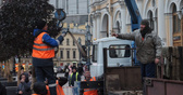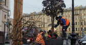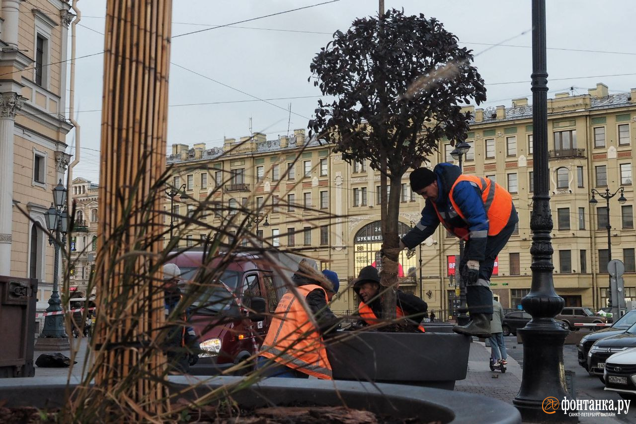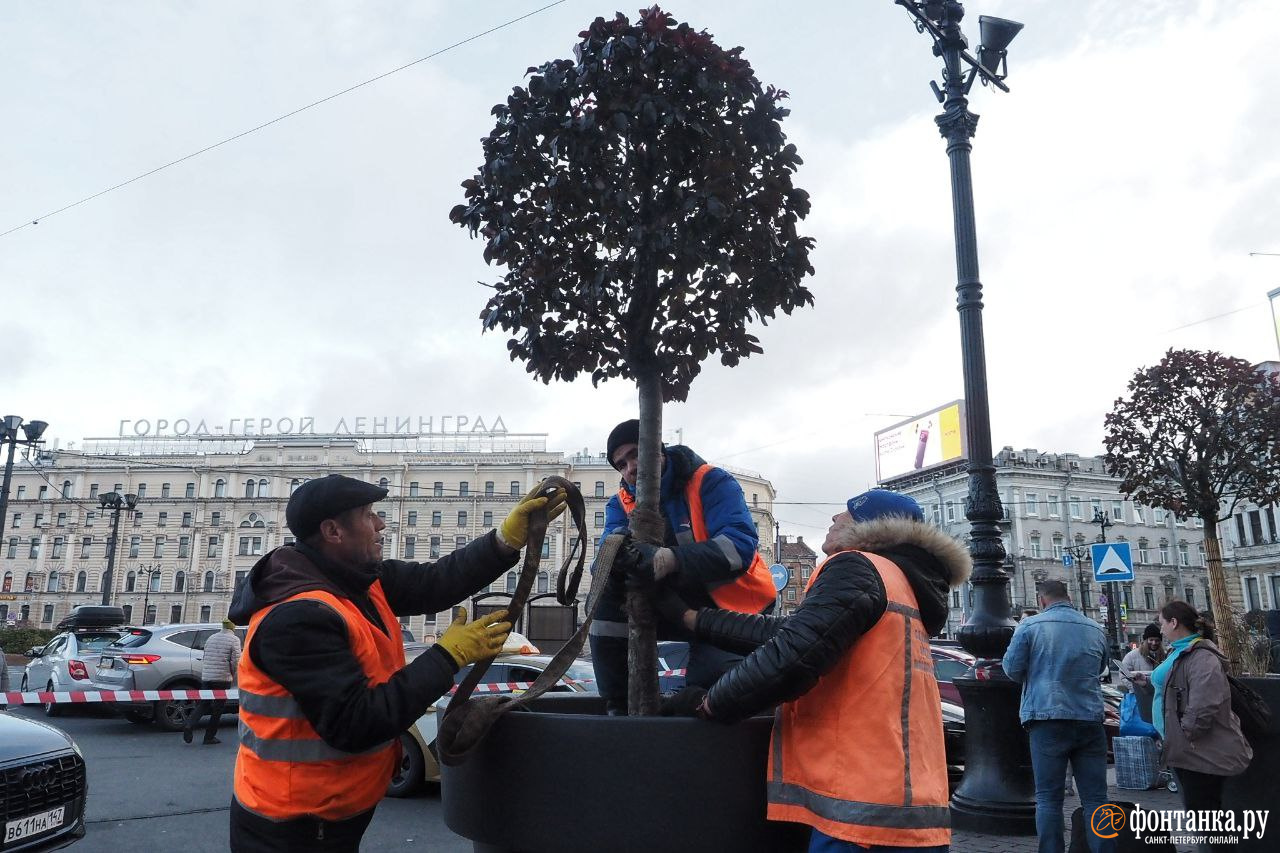 Как сообщает корреспондент «Фонтанки», утром 9 октября городские службы работали у Московского вокзала. Садовники вынимали из вазонов 14 яблонь, чтобы увезти на базу.