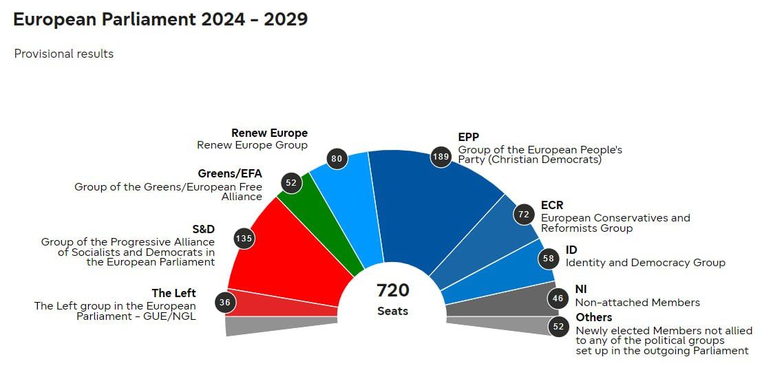 — «Зелёные / Европейский свободный альянс» (климатическая повестка и национальные меньшинства) — 52 места;