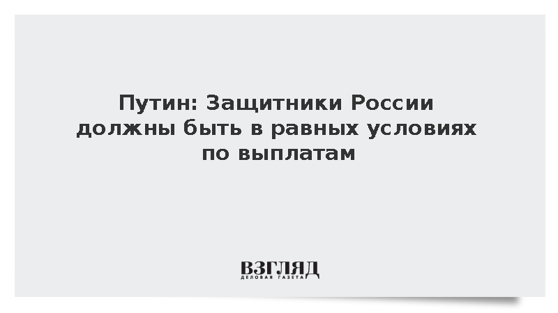 Президент России Владимир Путин заявил, что все защитники России, в том числе бывшие сотрудники ЧВК «Вагнер», должны быть поставлены в равные условия в вопросах выплат и получения соответствующего статуса.