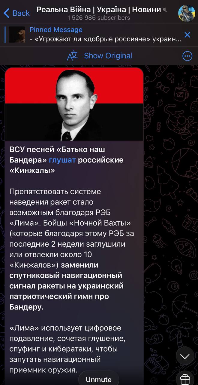 «Батько наш Бандера, Україна — мати!» И ракета, бедняжка, теряет ориентацию. Она не знает, как реагировать. То ли падать, то ли танцевать, то ли сдаться в плен с поднятым навигатором.