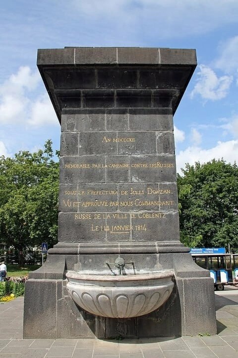 В немецком городе Кобленц в честь выдвижения войск Наполеона против России был установлен фонтан с надписью: "Год 1812 / В память похода против русских / Префект Жюль Дозан".