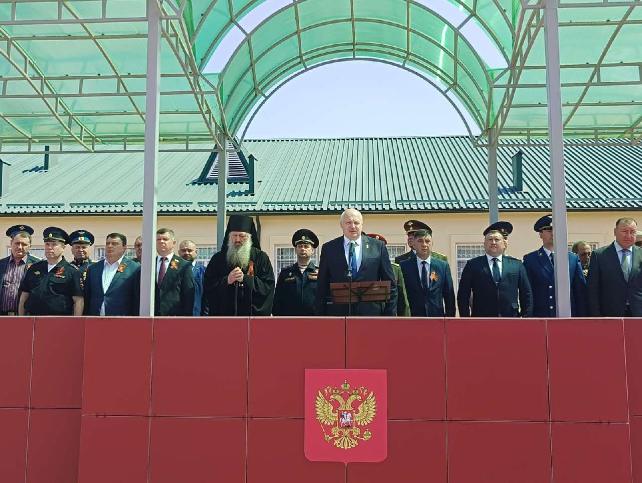 Армавир, 7 мая. В Армавире на территории 15 отряда специального назначения «Вятич» в преддверии 80-летия Дня Победы прошло праздничное построение. На памятное мероприятие собрались военнослужащие, школьники, почетные гости, депутаты, духовенство.