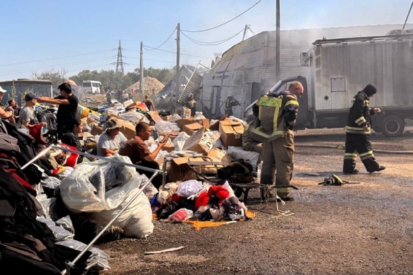 В Волгограде пожар уничтожил товар на вещевом рынке