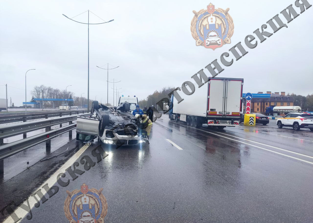 Женщина 1983 года рождения, находясь за рулем автомобиля BMW X-4, не справилась с управлением транспортным средством и врезалась в металлическое барьерное ограждение. После этого автомобиль перевернулся.