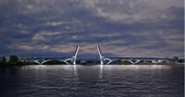 Первый этап (мост) оценивается в 54,5 млрд рублей, второй (развязка) — в 9,8 млрд. В конце 2023-го на левом берегу установили закладной камень, а перед Новым годом город объявил первый конкурс — на разработку рабочей документации и подготовку территории именно под развязку на правом берегу за 2,6 млрд рублей . В нем будущий объект показали лицом, хоть и в обкусанном виде.